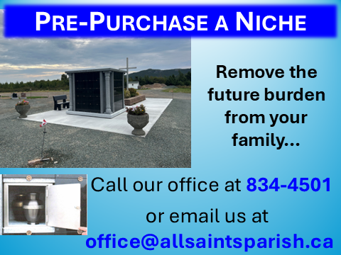 Click here to download a copy of our "All Saints CBS Cemetery Policies and Guidelines Booklet"